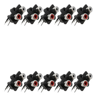 Kit 10 Conector Tomada Rca Fêmea Av2-8,4-7 Audio Duplo Vermelho Branco