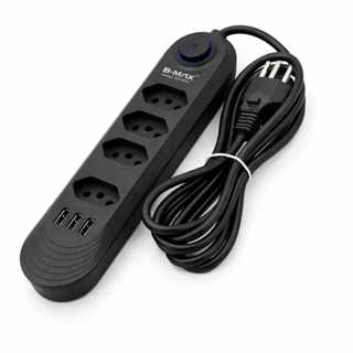 Extensão B-Max Preta 4 Tomadas + 3 USB com Interruptor