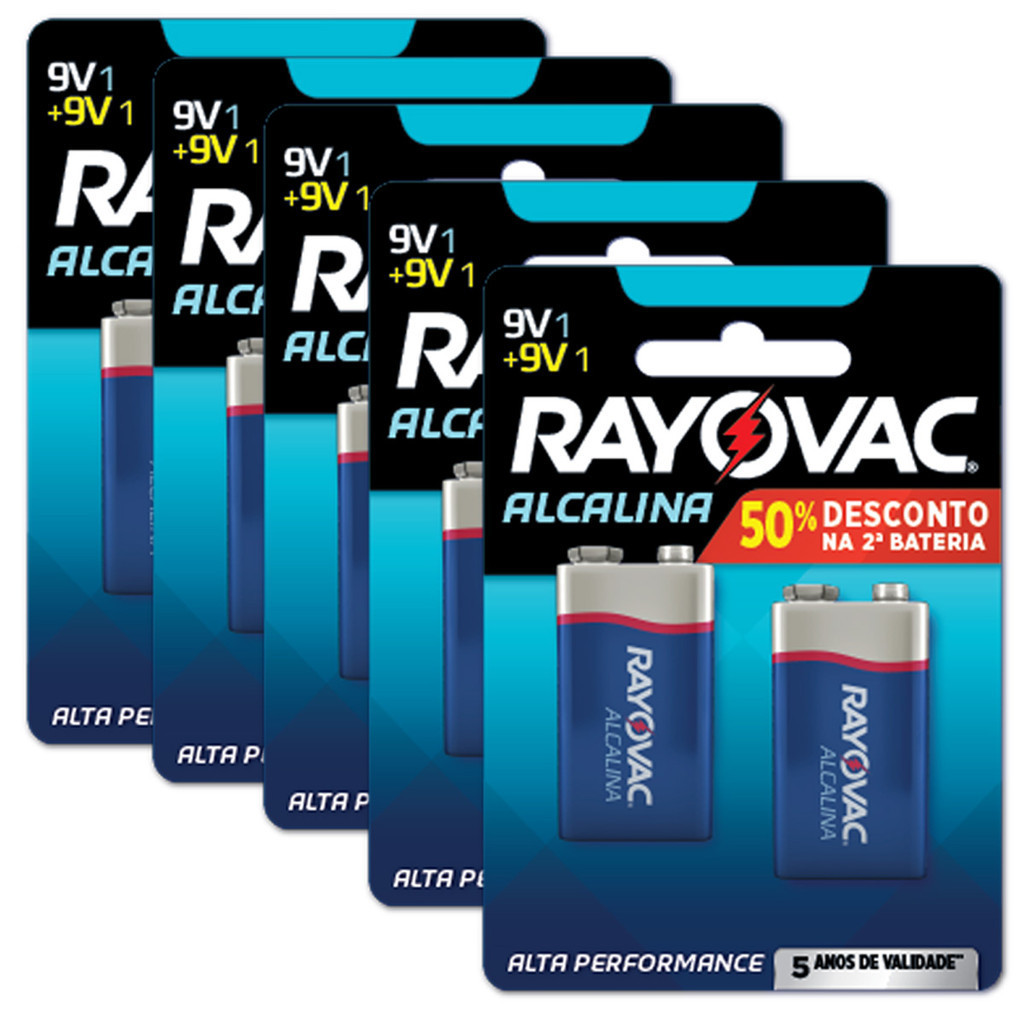 Pilha Alcalina 9V Rayovac Bateria 9 Volts 6LR61 6F22 kit 10 unidades