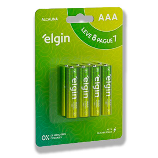Pilha Alcalina AAA Elgin Bateria 3A Palito 8 unidades