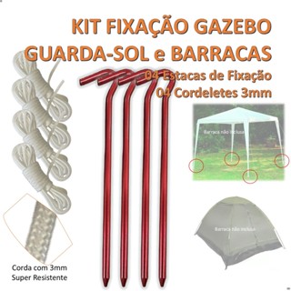 Kit 4 Estacas Gancho Alumínio Vermelha + Cordas de Amarração p/ Fixação Barracas, Toldo, Guarda-Sol em Oferta na Shopee Shopee