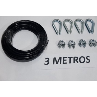 Cabo de aço para academia 3 metros 3/16 revestido + 4 sapatilha 3/16 + 4 Clip 3/16 em Oferta na Shopee Shopee 🔥 -10%