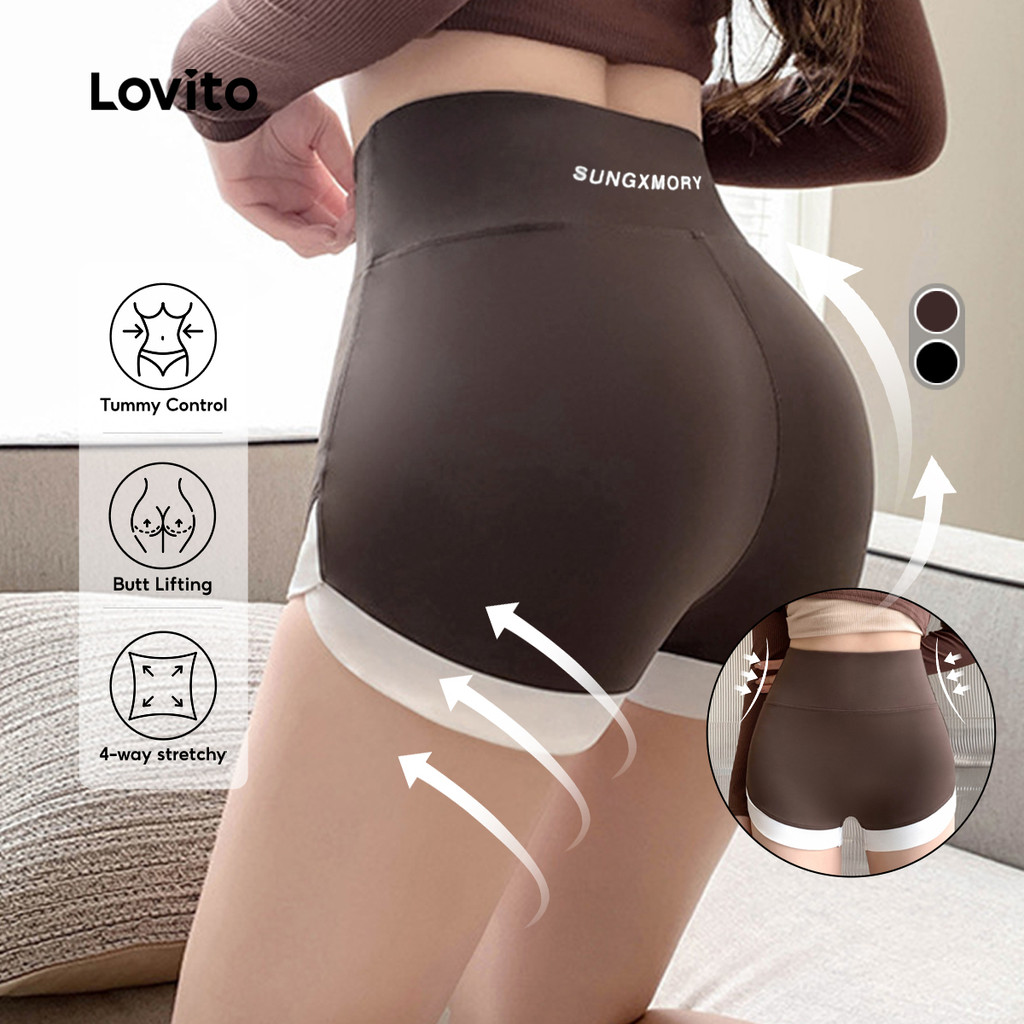 Lovito Shorts Esportivos com Controle de Barriga Levantamento de Bumbum Elástico em 4 direções LNA129041 em Oferta na Shopee Shopee