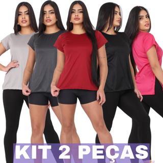 Kit 2 Blusas Camisa Feminina Fitness Academia Dry Fit Camisetas Musculação Treino Tapa Bum Bum em Oferta na Shopee Shopee