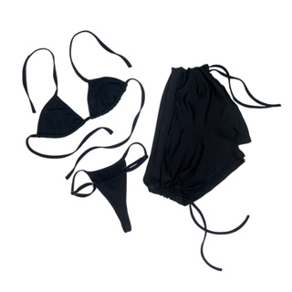 Conjunto Biquíni 3 Peças Cortininha com Calcinha Fita e Short Sunkini – Moda Praia Verão Preto em Oferta na Shopee Shopee