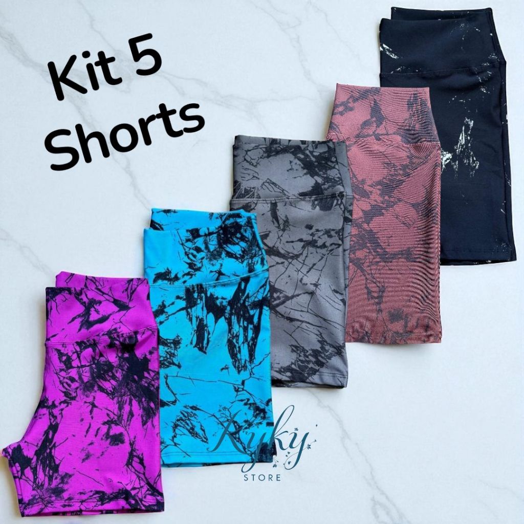 Kit 5 Shorts Feminino Fitness Tie Dye Marmorizado Roupa Academia Cintura Alta Feminino Zero Transparencia em Oferta na Shopee Shopee