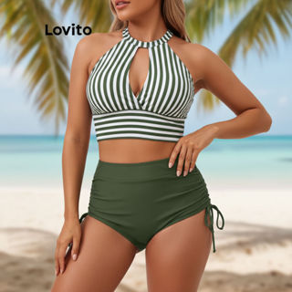 (Trendy2) Lovito Conjuntos De Biquíni Casuais Listrados Com Corte Frontal E Gravata Para Mulheres LNL73194 em Oferta na Shopee Shopee