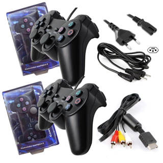 Kit Ps2 2 Controles Joystick + Cabos AV RCA + Cabo Força Kit Acessórios para Consoles Playstation 2 Manete em Oferta na Shopee Shopee