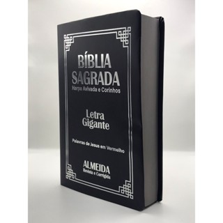 Bíblia Sagrada Tamanho Grande com Harpa Palavras de Jesus em Vermelho Capa Papel Azul
