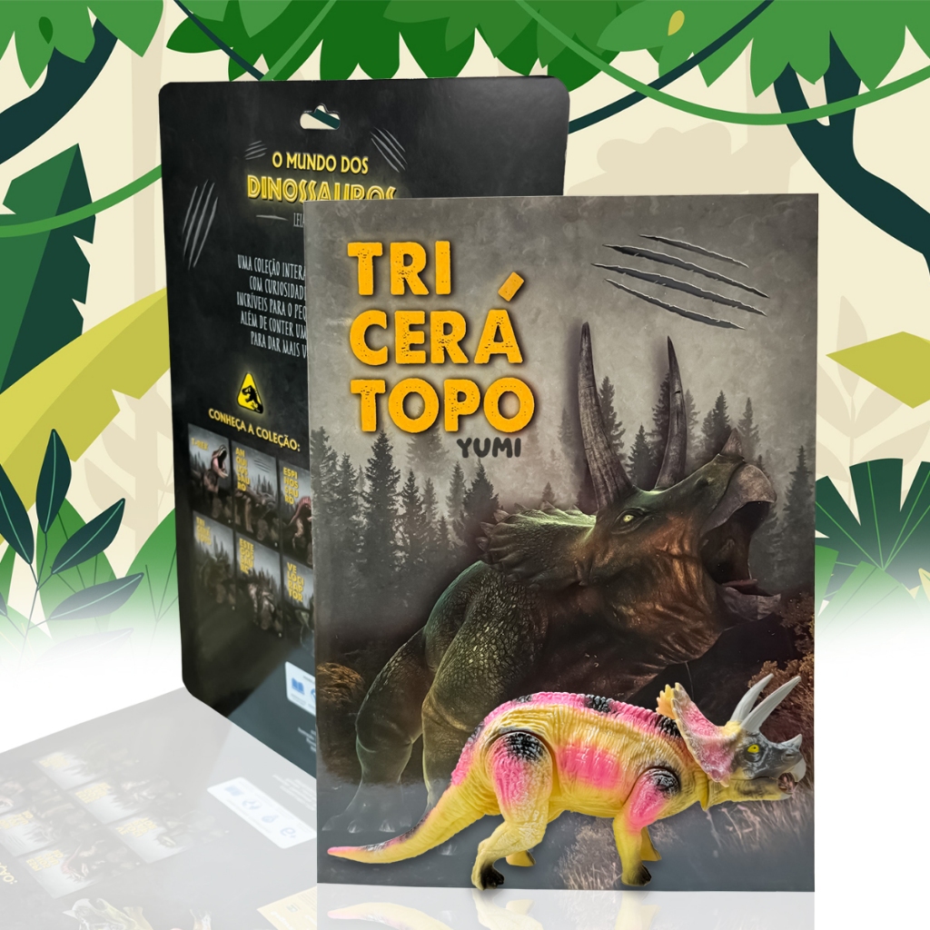 Livro Mundo Dos Dinossauros + Dinossauro Brinquedo Tricerátopo Tricerátops Colecionável Articulado E Realista