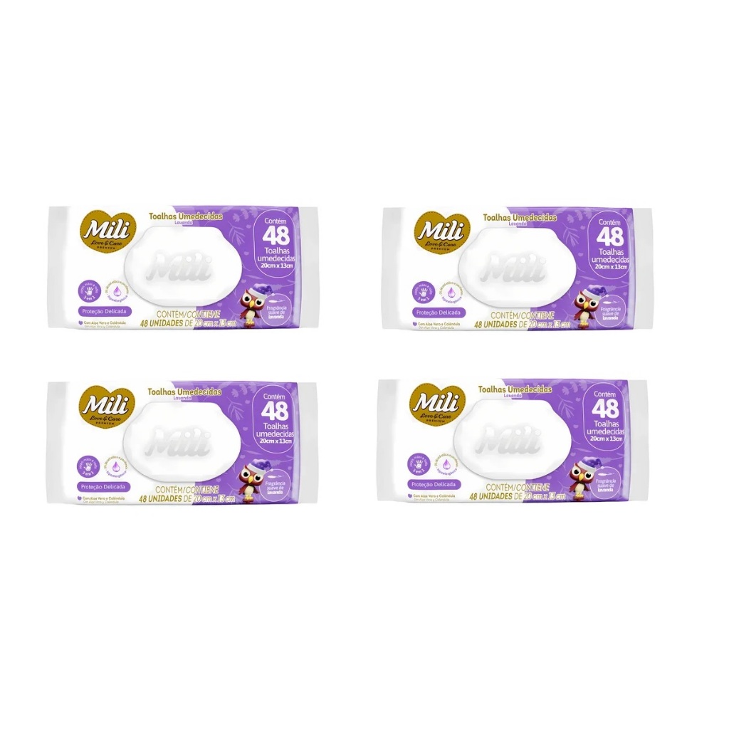 Kit 4 Toalha Umedecida Love Care Lavanda com 48 unidades – Mili em Oferta na Shopee Shopee