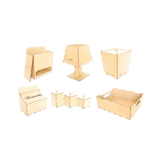 Kit Higiene Bebê Organizador Produzido em MDF Cru com 8 peças vários temas
