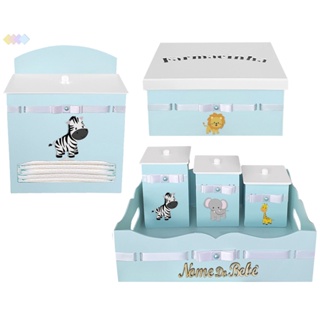 Cesta Kit Higiene Safari baby Em Madeira Mdf