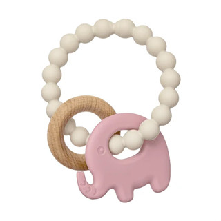 Mordedor Em Silicone E Bambu Elefante Rosa Buba