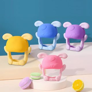Luvinha Coelho Silicone Mordedor de Bebe Luva Dentição Infantil Luva Massageador de Dente Bebes