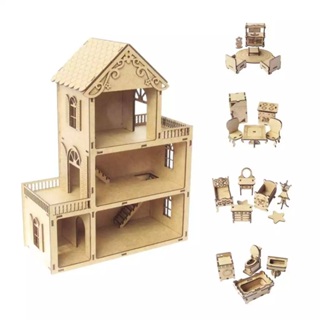 Casinha 30 Cm Com 20 Mini Móveis Mdf Cru Para Presentear