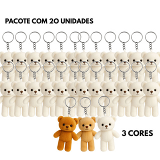 20 Chaveiro Mini Ursinho De Pelucia Com Pingente Lembrancinha Cha De Bebe Convites