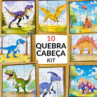 Kit 10 Quebra Cabeça Mdf 9 Peças Jogo Pedagógico Lúdico infantil Dinossauros