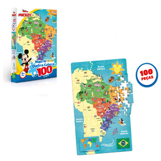 Quebra Cabeça Disney's Mickey Mouse Mapa do Brasil 100 Peças - Toyster 8074