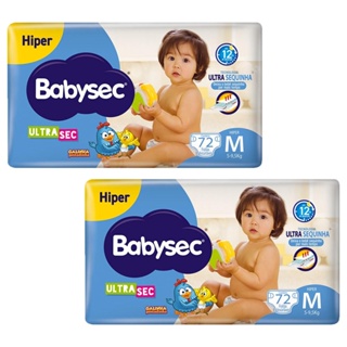 Kit 2 Fraldas Babysec Galinha Pintadinha Ultrasec Hiper Tamanho M 72 unidades cada