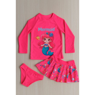 Trikini Conjunto Roupa de Banho Infantil Blusa Longa Saia e Calcinha Biquini Proteção UV50+