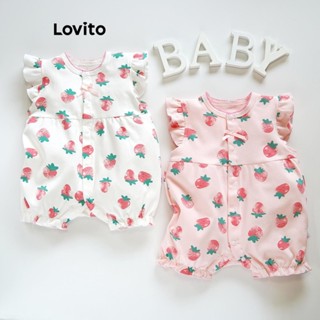 Lovito Macacão Elegante Com Estampa De Laços De Frutas E Legumes E Botões Frontais Verão/primavera Do Bebê LNA94024