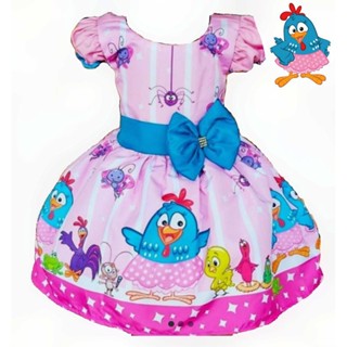 Vestido Infantil Luxo Galinha Pintadinha Rosa Bufante.