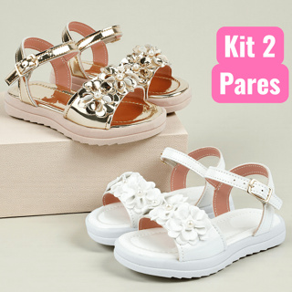 Kit 2 Pares Sandália Infantil Menina com Flores Delicadas Sola Antiderrapante Confortável