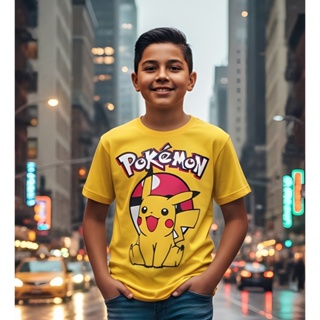 Camiseta Algodao Infantil Pokemon Ash Picachu Charmander Bubassauro Squirtle Algodao Promocao