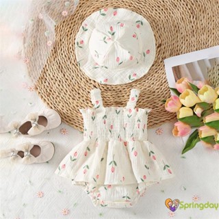 Macacão Infantil Bebê para Meninas, Roupas de Verão sem Mangas Estampa Floral Vestido com Chapéu de Sol,3-18 Meses