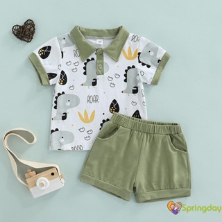 Conjunto Infantil De Verão Para Meninos Com Estampa De Dinossauro , Tops De Manga Curta Shorts Sólidos,0-4 Anos