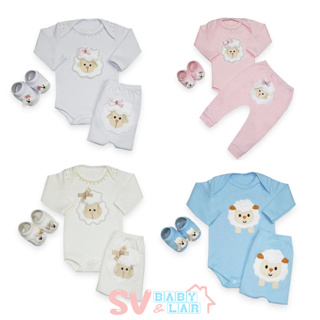 Conjunto Body Bebê com Calça Mijão e Sapatinho Ovelha Kit 3 peças