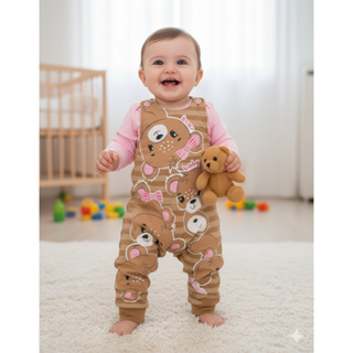 Jardineira Banho de Sol Temático Mesversario Fantasia Unissex+Boina ou Laço