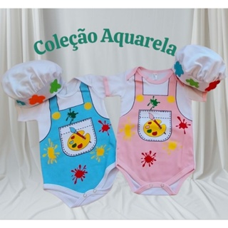 Body Para Bebe Aquarela Temáticos/Bebe Artista Pintando o Sete Bori Kit Body Bebe Fantasia