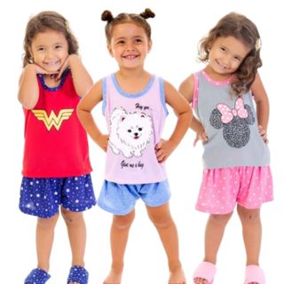 KIt com 3 Baby Doll Regata Confort Infantil Verão em malha premium ESTAMPAS SORTIDAS
