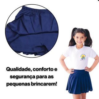 Shorts saia com pregas infantil para uniforme e dia a dia.