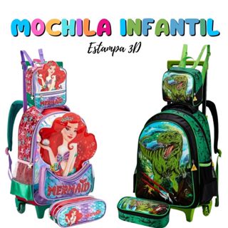 Kit Mochila Infantil 2 Em 1 Rodinhas Aleatória Menino Menina Linda Prática Grande