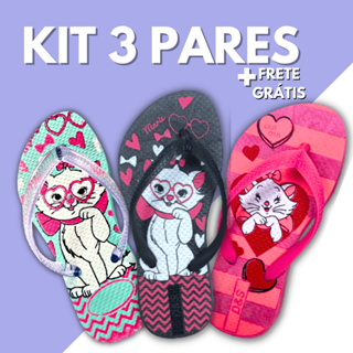 Kit 3 Pares Chinelo Infantil Menina Sandalia Criança Feminina Slim Calçado Feminino Kids Confortável Chinela Macio Leve