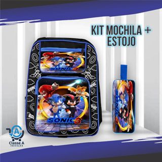 Kit Escolar Mochila Grande e Estojo Infantil Masculino Menino Personagem Sonic
