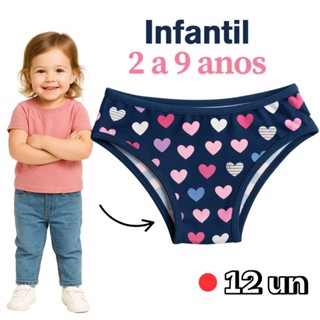 Kit 12 Calcinhas Infantis Para Meninas De 2 a 9 anos Forro 100% Algodão