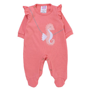 Macacão Longo Bebê Din Don Estampa Cavalinhos Marinhos