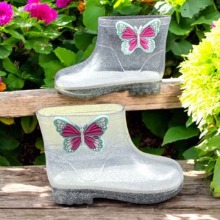 Galocha Bota De Chuva Borboleta Azul Delicada Infantil Juvenil Menina Confortável Leve Impermeável Estilosa Moderno