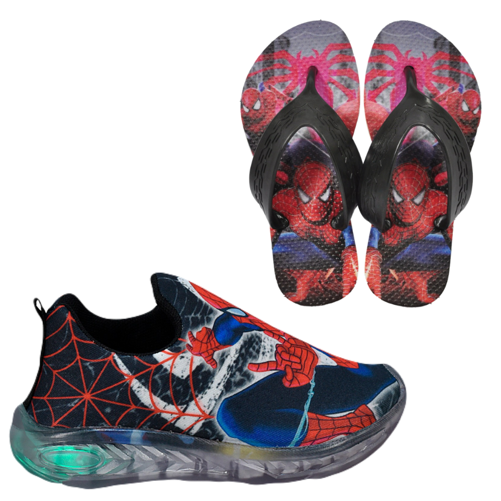 Tênis Led Infantil Homem Aranha Sonic Hulk + Chinelo