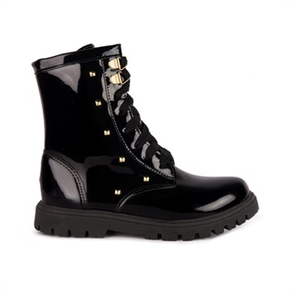 Coturno Feminino Infantil Tratorado Cano Alto Tachas Douradas