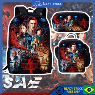 Conjunto Mochila Escolar Infantil Stranger Things 4 Menino Estojo Lancheira Estudante Anime Escolar