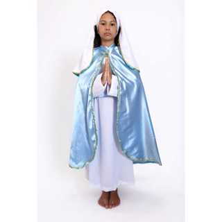 Fantasia Religiosa Nossa Senhora Infantil Azul e Branco com Capa e Véu Luxo - Católica - Catequese -Apresentações Igreja