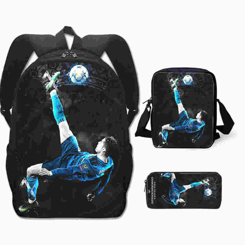 3 Peças/Conjunto Infantil Mochilas Bolsa De Ombro Caixa De Lápis Cristiano Ronaldo Bolsa Escolar Primária Confortável