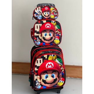 Mario | Kit Mochila Escolar Infantil com Rodinhas + Lancheira + Estojo