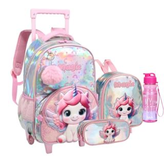 Mochila Feminina de Rodinha Menina Infantil Escolar Unicórnio Pop IT Kit Lancheira Térmica e Estojo