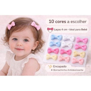 Kit 10 Mini Laços Bebê com Presilha Encapada Bico de Pato – RN, Infantil – Antideslizante ou fita adesiva